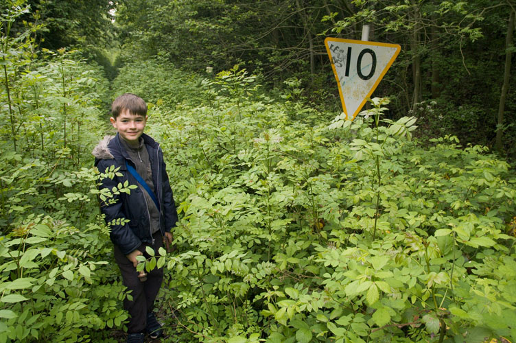 Westward we went, and the undergrowth got thicker and thicker, and it got harder to see the track, (Max is standing on the middle of it).