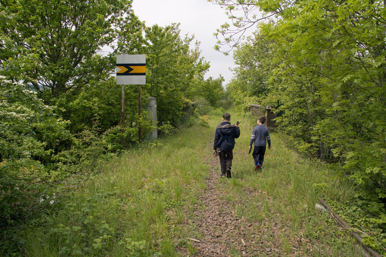 And so we came to the real end of the line. Just behind the boys is the road whose building required the removal of the embankment and track.