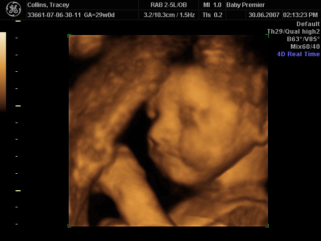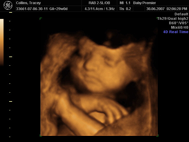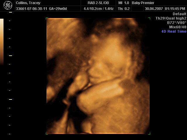 On 30th June 2007, we had a scan of our baby done in "4D" - fancy speak for a moving 3D image.