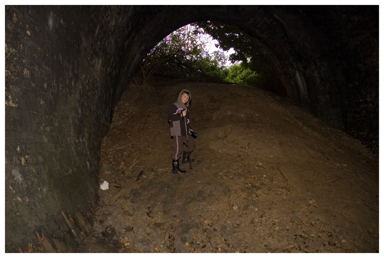 The southern entrance was very overgrown - the tunnel is just a couple of yards behind Ben.