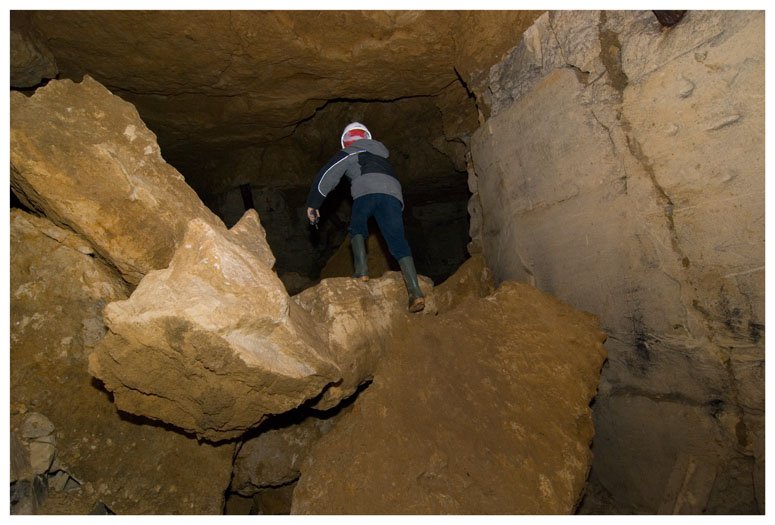 Groz slides down a rock on the way to the 'surprise' that I had promised them...