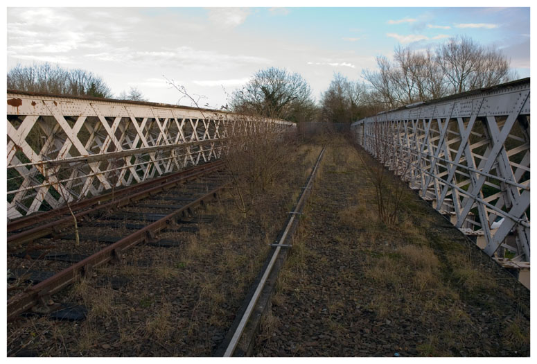 The bridge that would have led to the engine sheds. Look here for a picture of what it used to look like.