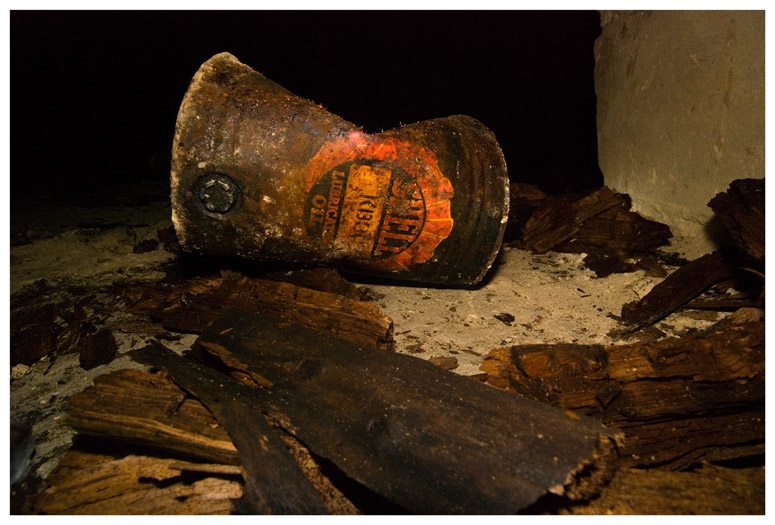 The south east corner of the old quarry was never used for bomb storage, and we climbed this wobbly pile of rotting wood to look into it.