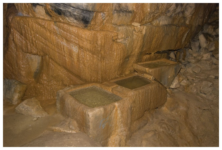 The Square Well. Drips were constantly hitting the water as it had been raining a lot recently.