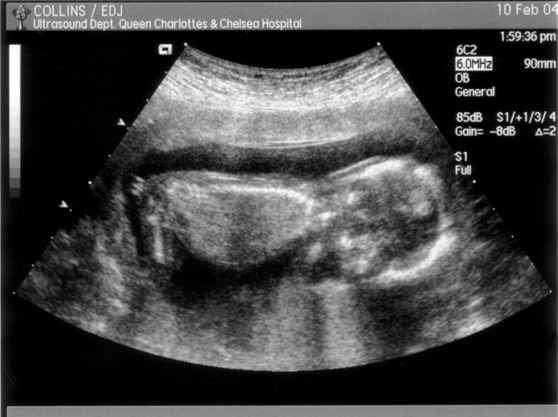 These are the first pictures of our new baby, (due on the 4th August), taken during Tracey's first ultrasound scan on 10th February.
