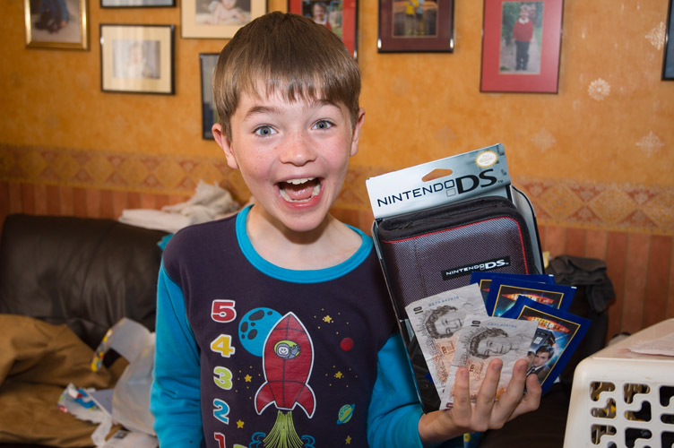 Max is a bit happy to receive a Nintendo DS.