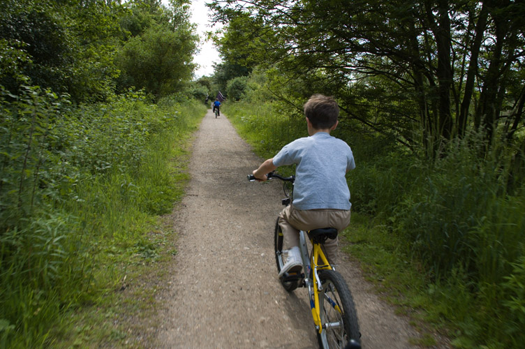 The Ebury Way stretches for about 4 miles along the length of the old branch line. Being an old train line it is mostly flat, so is very easy to cycle on, and the views are really nice. It's easy to forgot that you're still inside the M25.