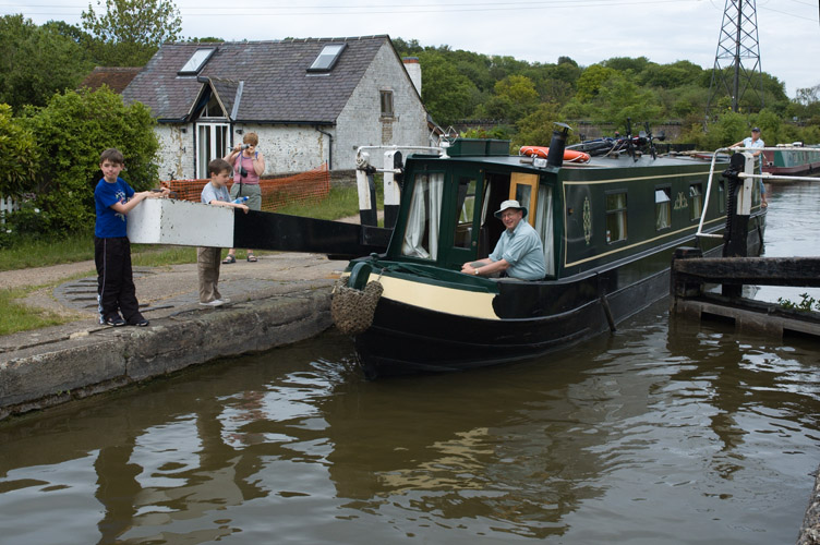 The boys help out with the canal lock.