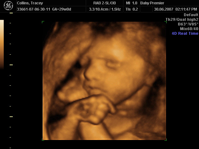 On 30th June 2007, we had a scan of our baby done in "4D" - fancy speak for a moving 3D image.