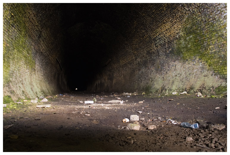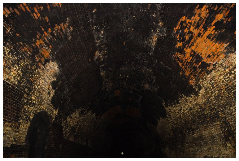 Most of the tunnel was black with soot from the steam trains.