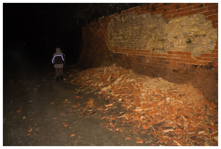In several places the tunnel walls were falling apart.