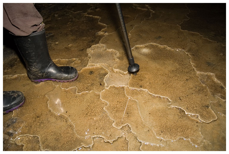 Towards the end of the tunnel it started to get quite wet. These hard formations on the floor were very similar to ones that we had seen in Yellowstone National Park in the USA.