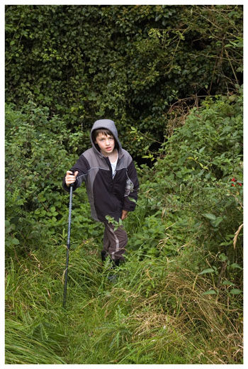 The southern entrance was very overgrown - the tunnel is just a couple of yards behind Ben.