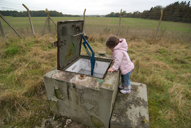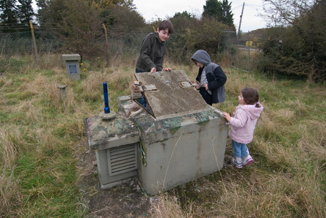 One of the tell-tale signs of a nearby nuclear bunker - a solitary telegraph pole carrying no wires. The CCTV camera was aimed at the bunker, but the wire from it only seemed to go to the top of the pole. We waved at it just in case it was working!