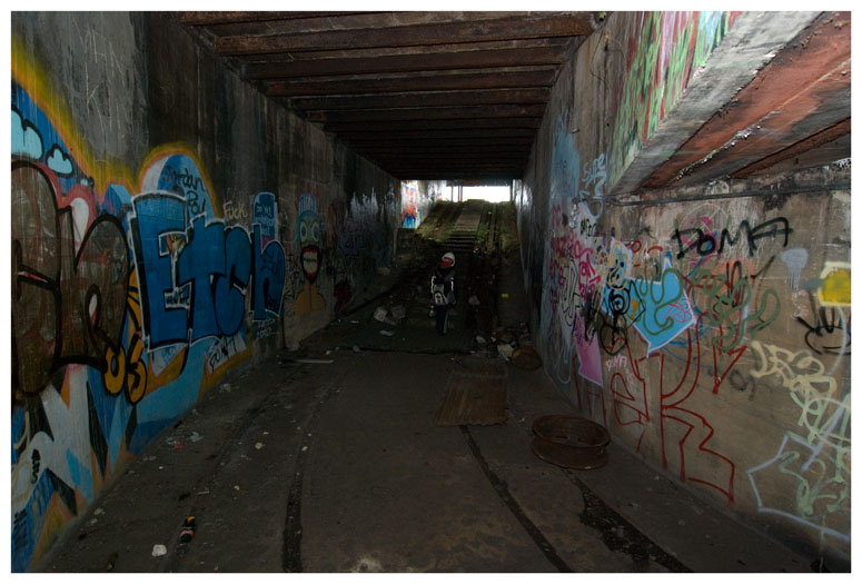 Under the tracks was the motor that would have pulled the carts up and down the slope into the main depot.