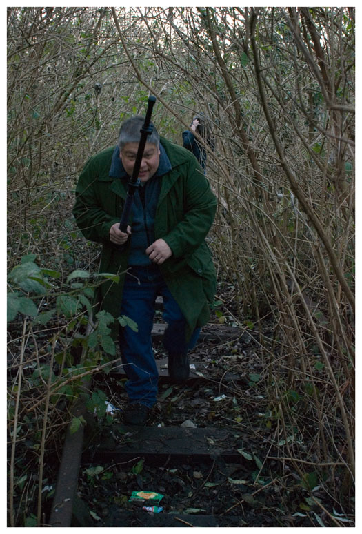 Lee discovers that a monopod is not the best object for bashing brambles.
