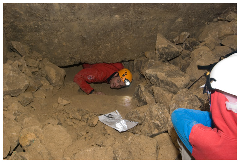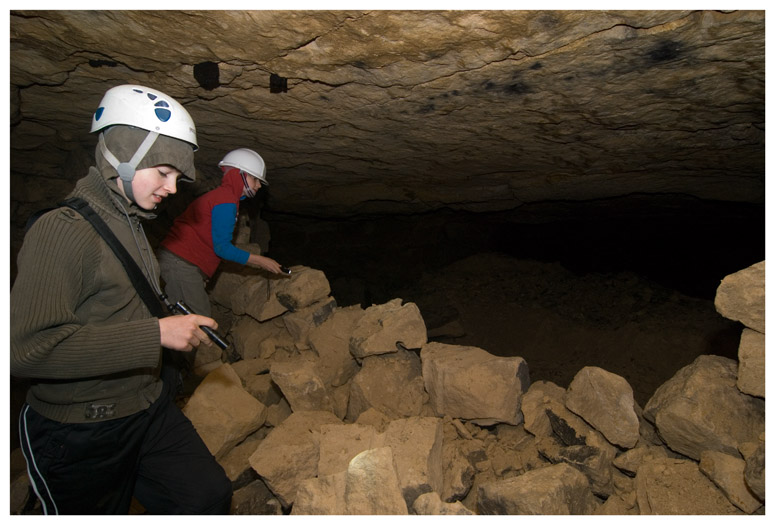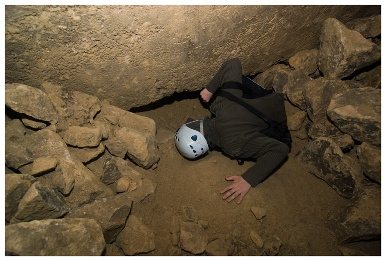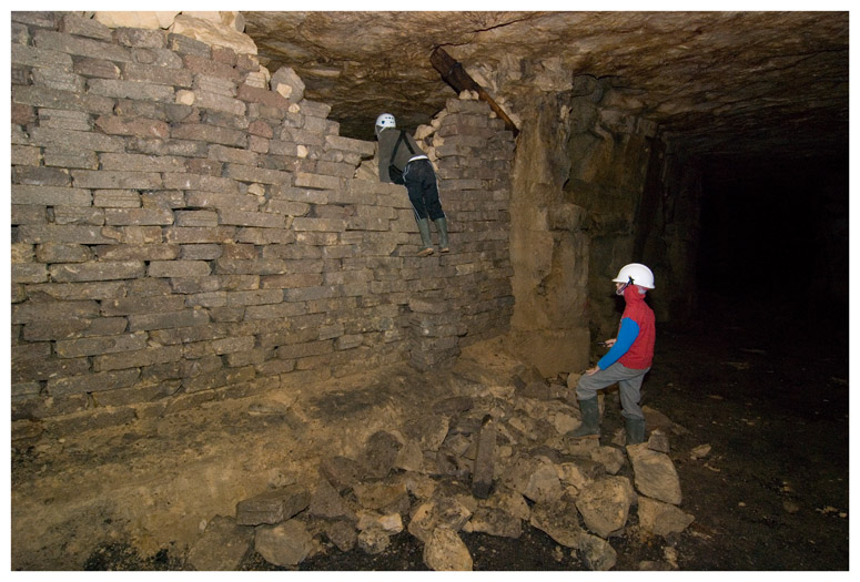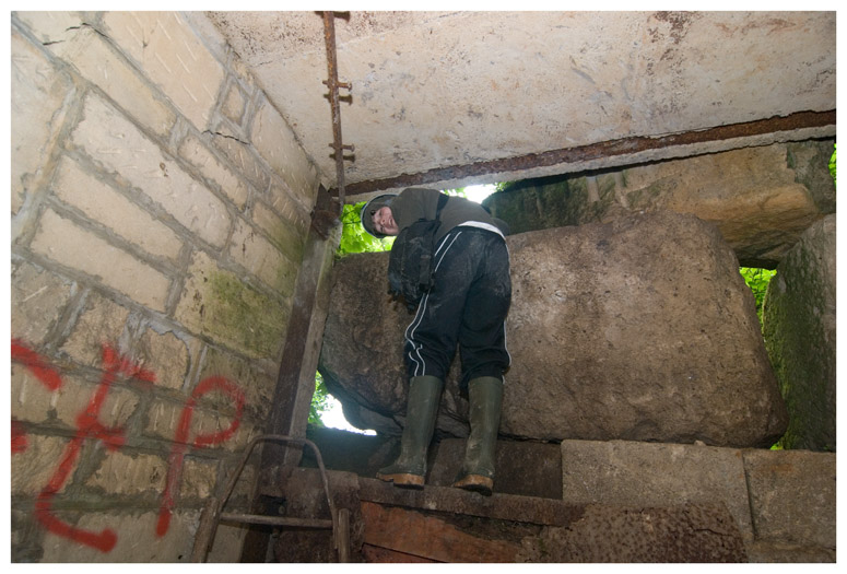 Climbing over 'deads' to get into another area of the quarry that was not used for bomb storage.