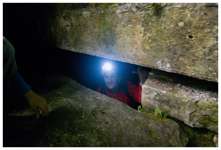 Max peers through a hole that leads to Monks Park Quarry, another area used for bomb storage. Unlike Ridge, Monks Park is still in use.
