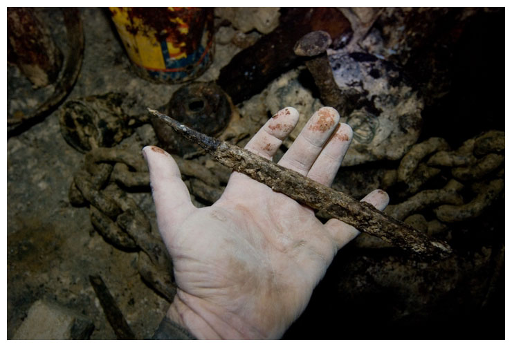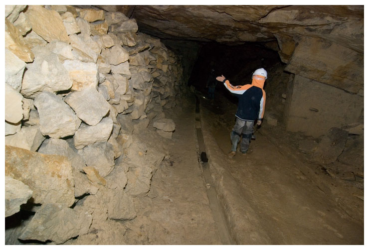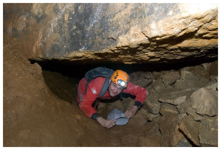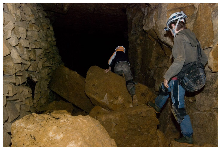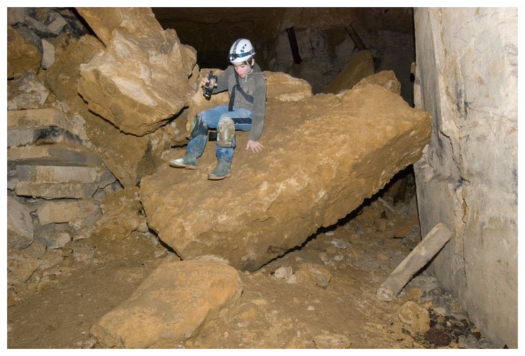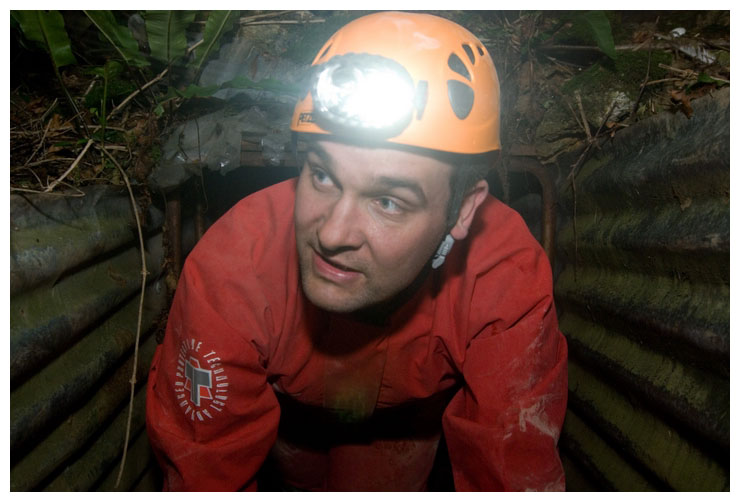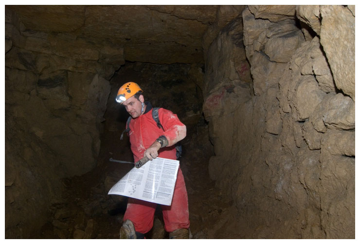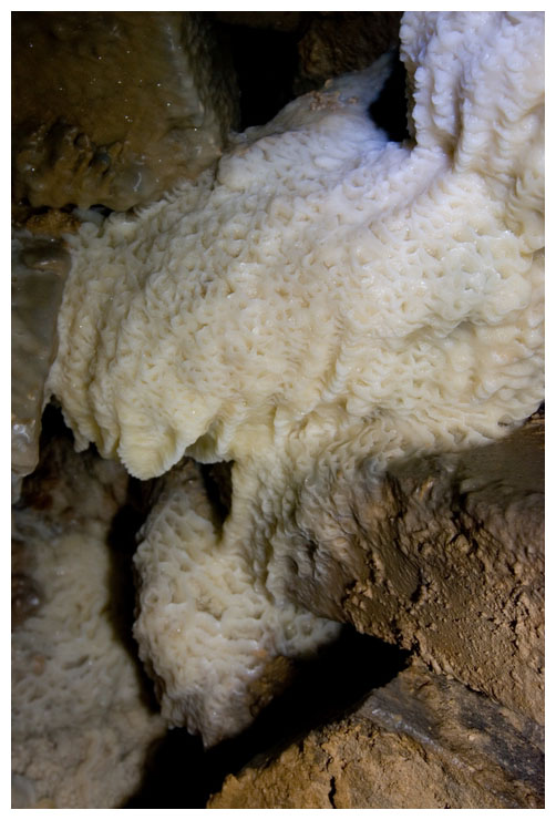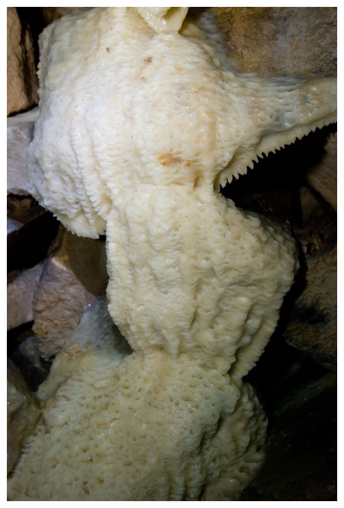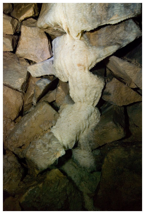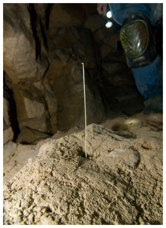 This poor shoot was growing straight upwards, looking for light. It probably would have been carried in here as a seed on a previous explorer's boot. We tried to move it so we could take it to daylight, but it wouldn't budge.
