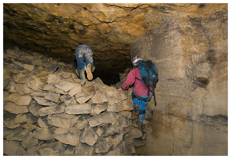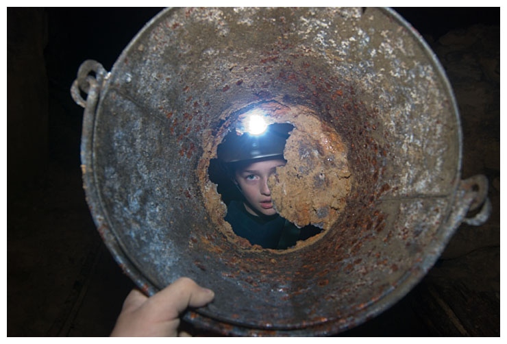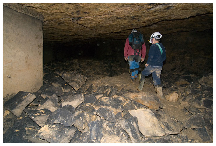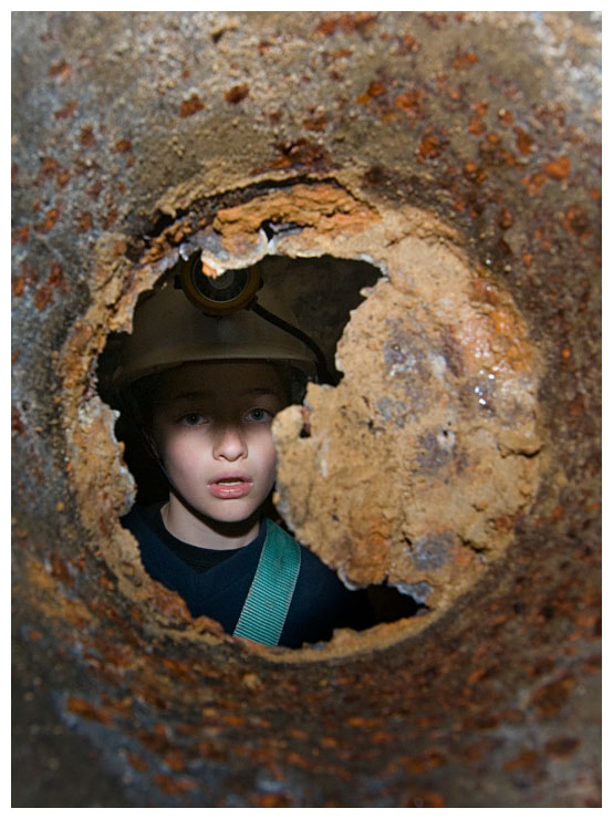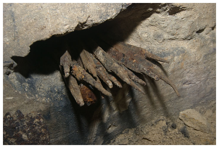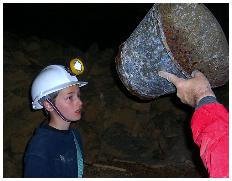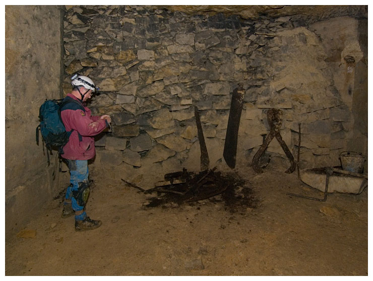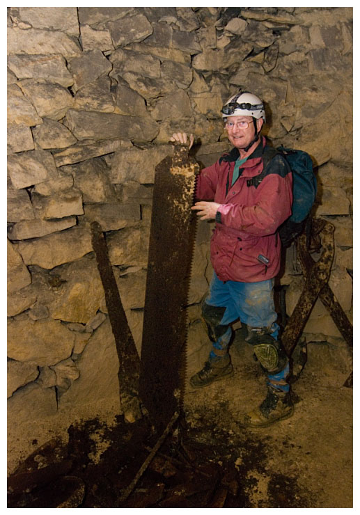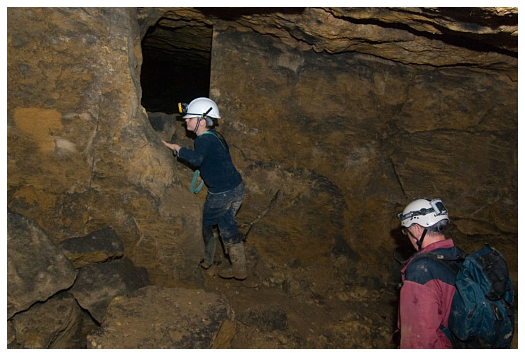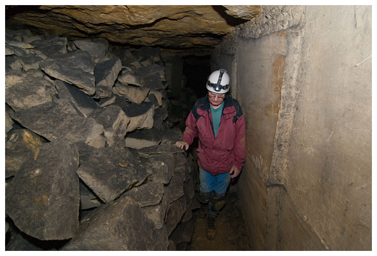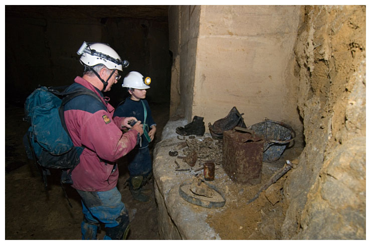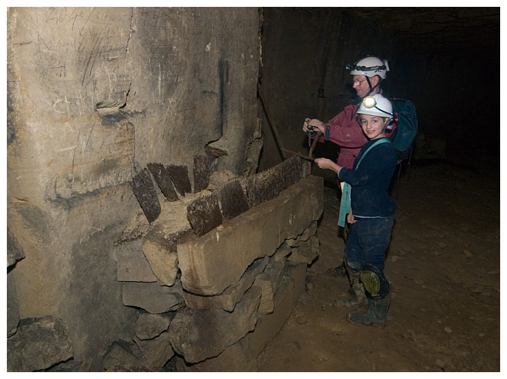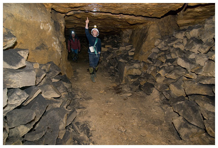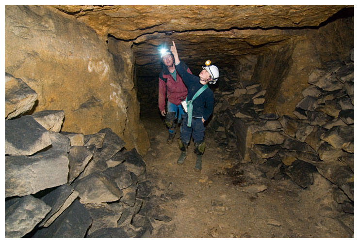 Ben points out a 'cleat' in the ceiling which were used to give an indication of movement of the rock above.