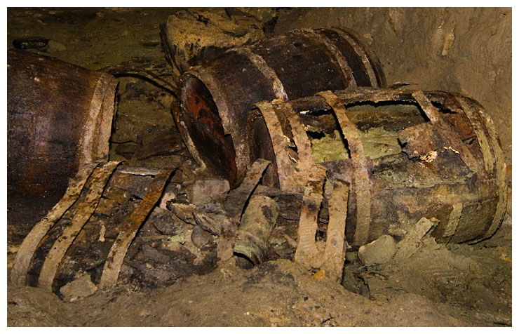 The barrels still contained carbide which was used in the miner's lamps.