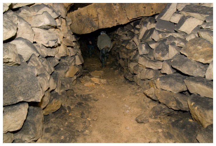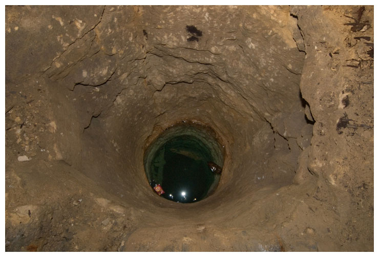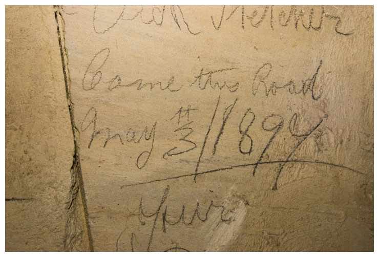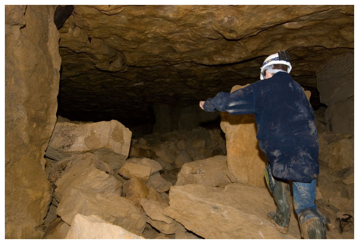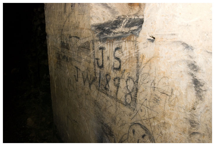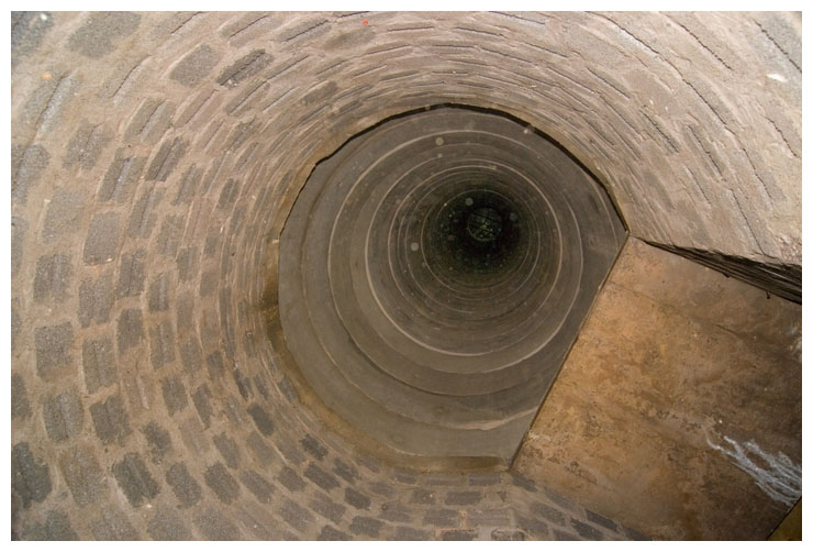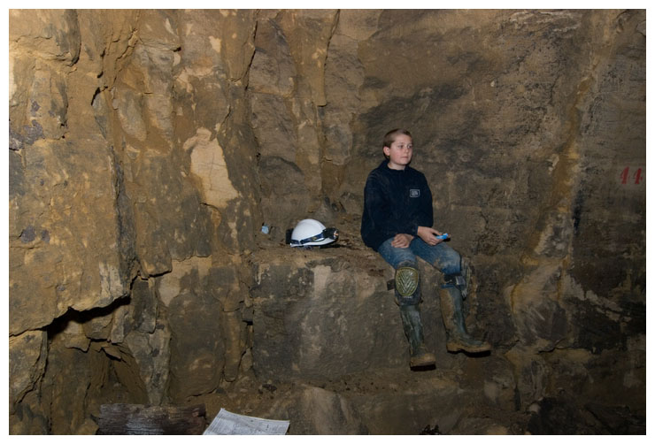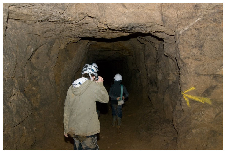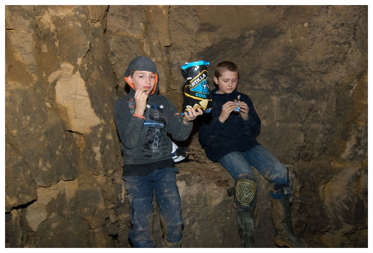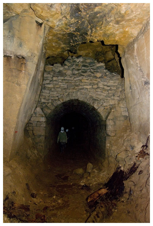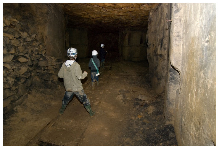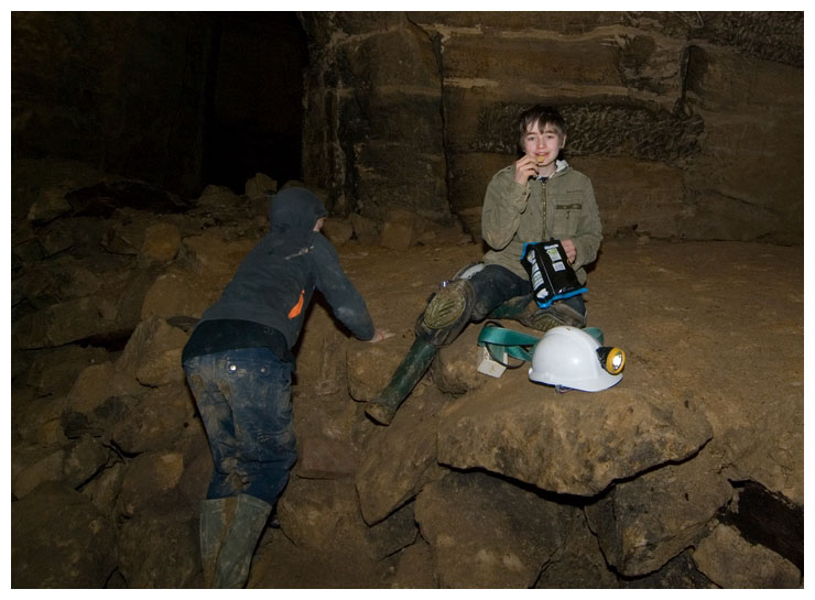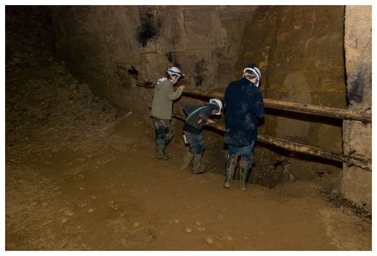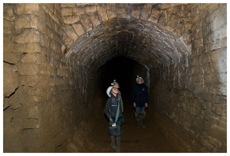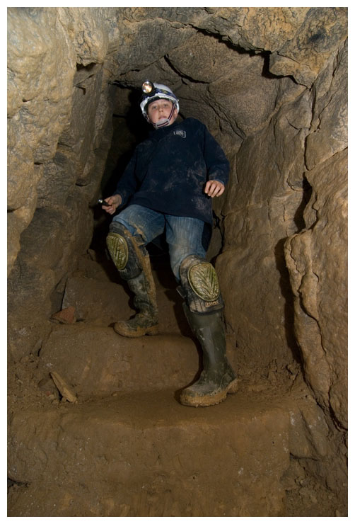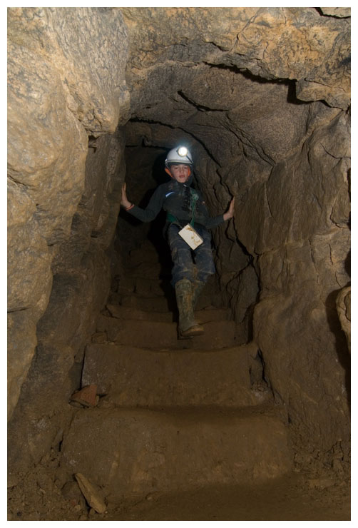 Ben and Matthew climb up the stairs that would have once led to the surface.