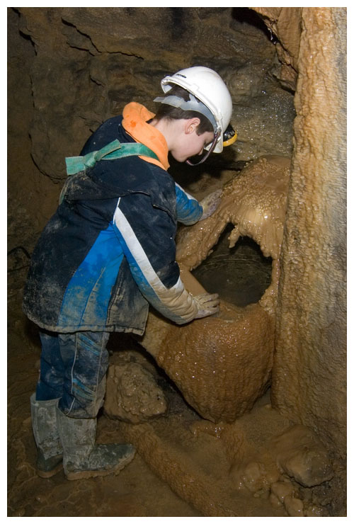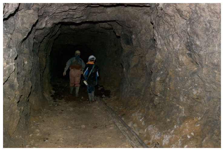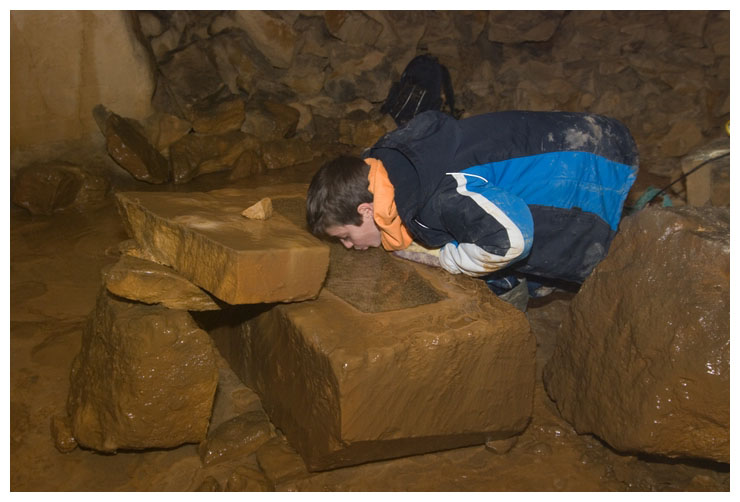 Ben drinking from a water trough in Brown's Folly Mine.