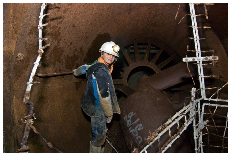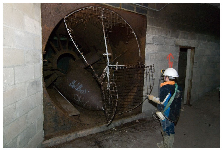The remains of a giant fan used to force air through the district.