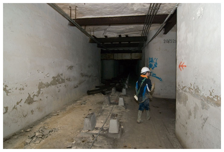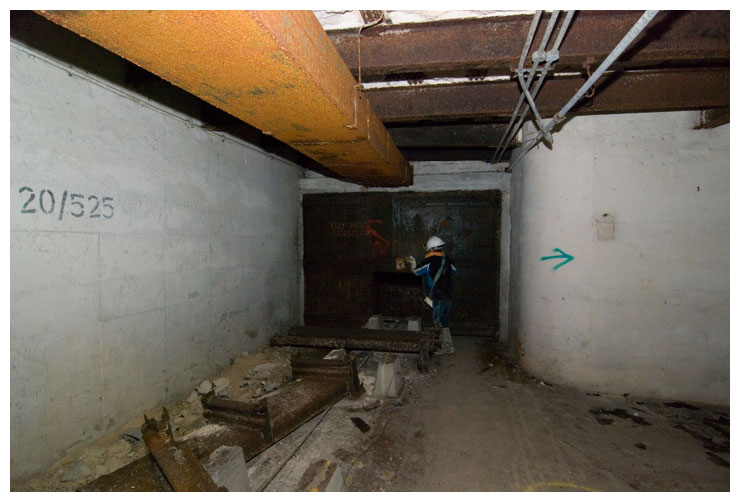 Remains of the conveyor that would have carried the boxes of ammunition.