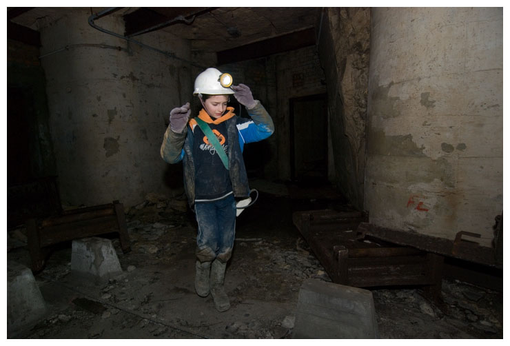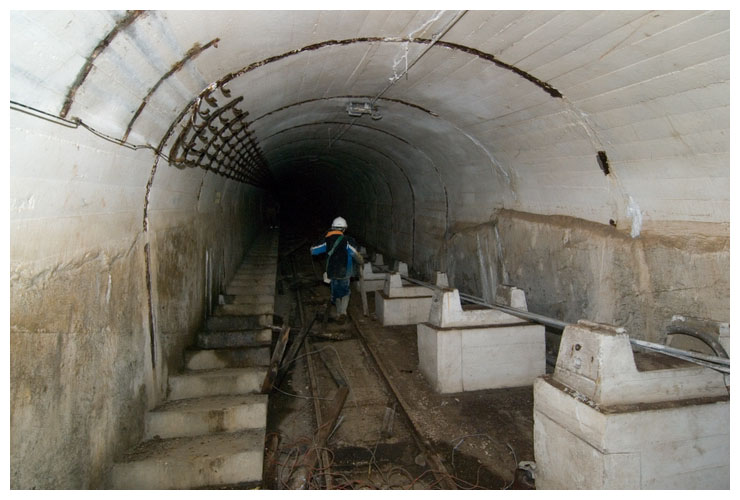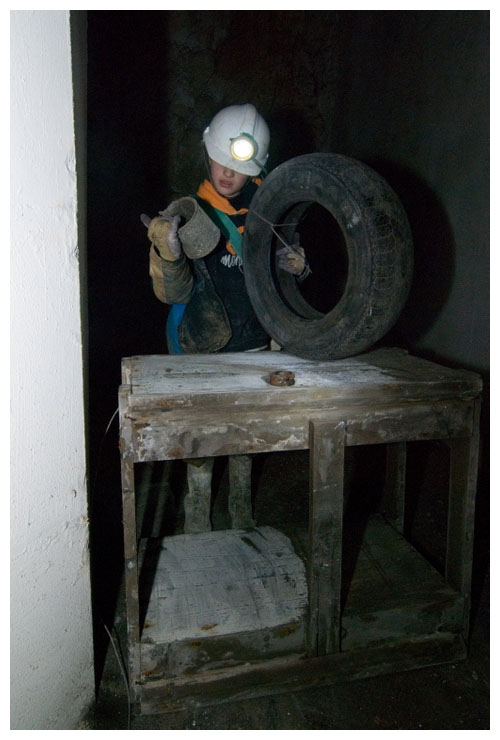 Climbing the slope shaft.